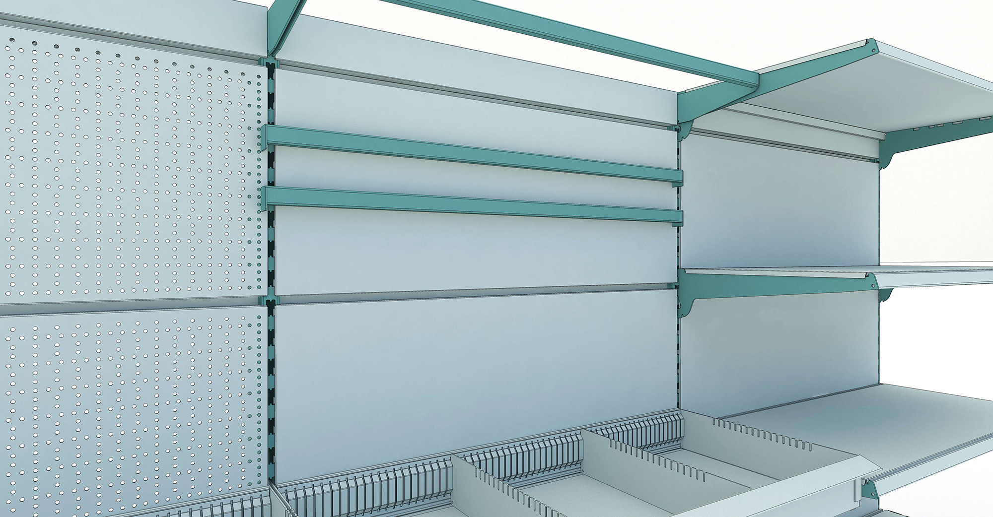 The N Series shelves are made of durable metal with a sturdy structure, featuring optional perforated back panels and adjustable basefoot. They are suitable for supermarkets, convenience stores, and various retail spaces to meet diverse market needs.